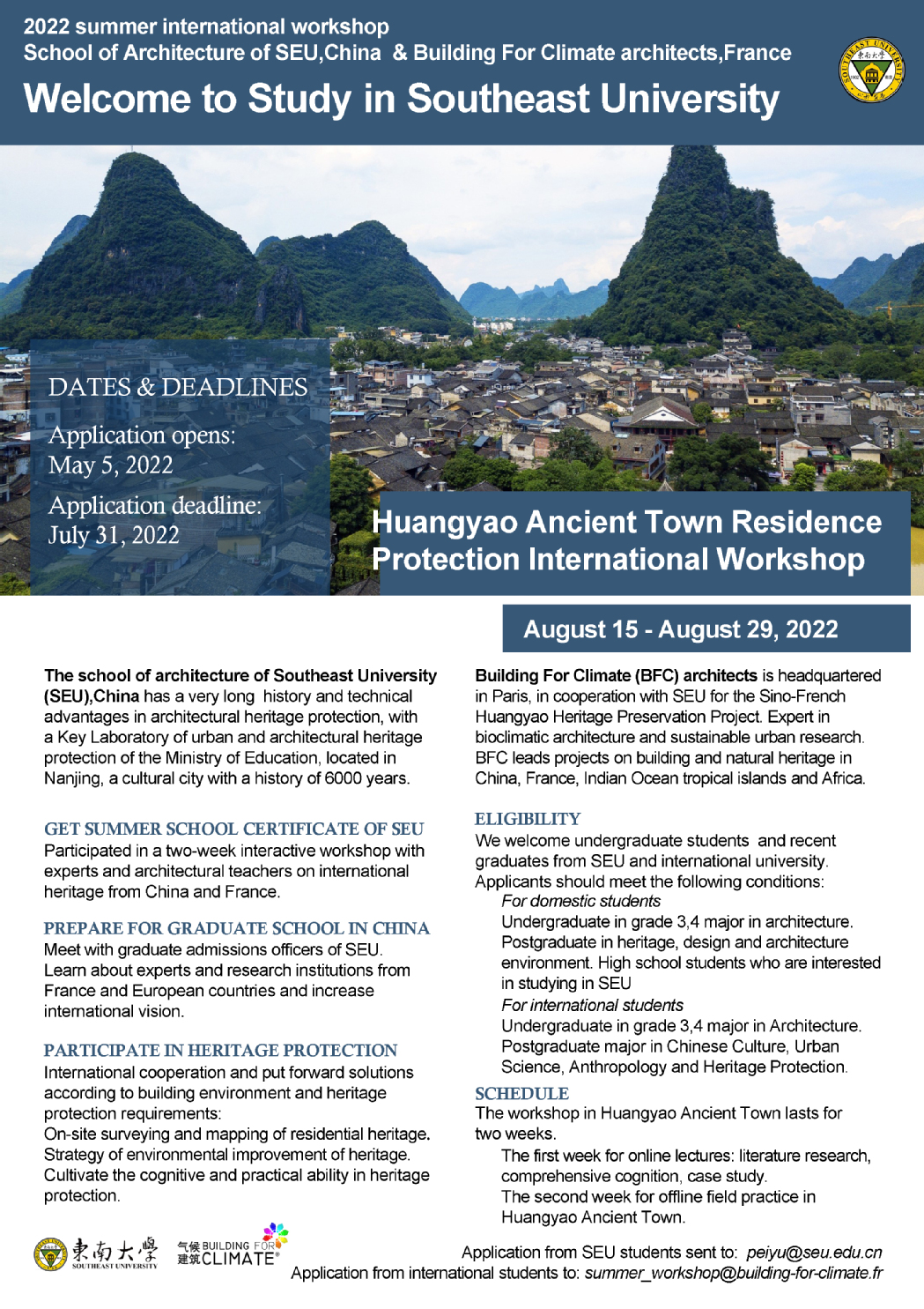 SEU International Summer School 2022 | Sino-French Joint Guangxi Huangyao Ancient Town Ming and Qing Dynasty BuildingHeritage Protection International Workshop