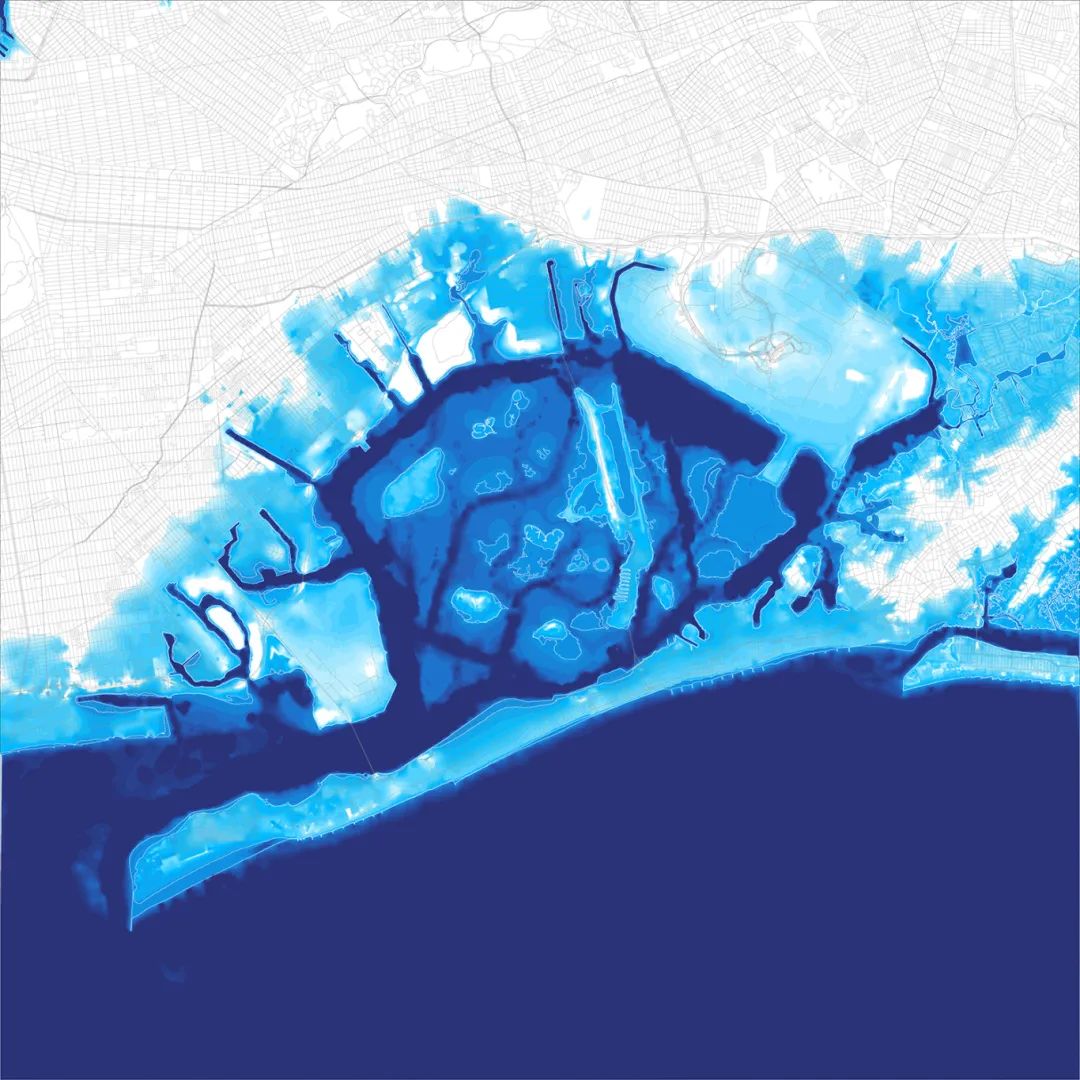 Storm surge inundation for Jamaica Bay, mapping a projected 100-year return period for 2055.