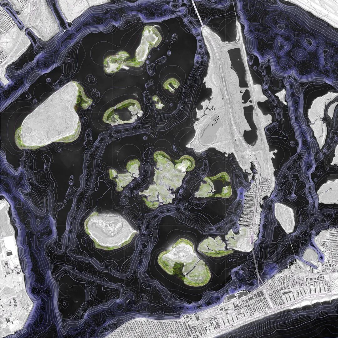 Plan of the proposed atoll terrace design strategy for Jamaica Bay, with elevated marsh terraces for sediment capture and marsh migration.