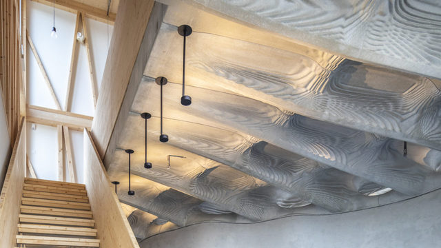 Smart Slab is the first concrete slab fabricated with a 3D-printed formwork. It is a lightweight concrete slab, displaying three-dimensional geometric differentiation on multiple scales. It combines the excellent structural properties of concrete with the geometric freedom of 3D printing which allows for the creation of highly optimised building components with complex structural configuration out of concrete.