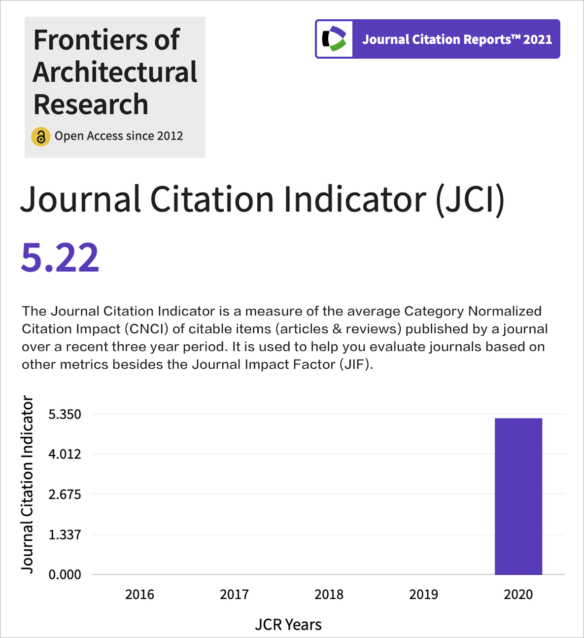 Journal Citation Indicator (JCI) 2021 is 5.22