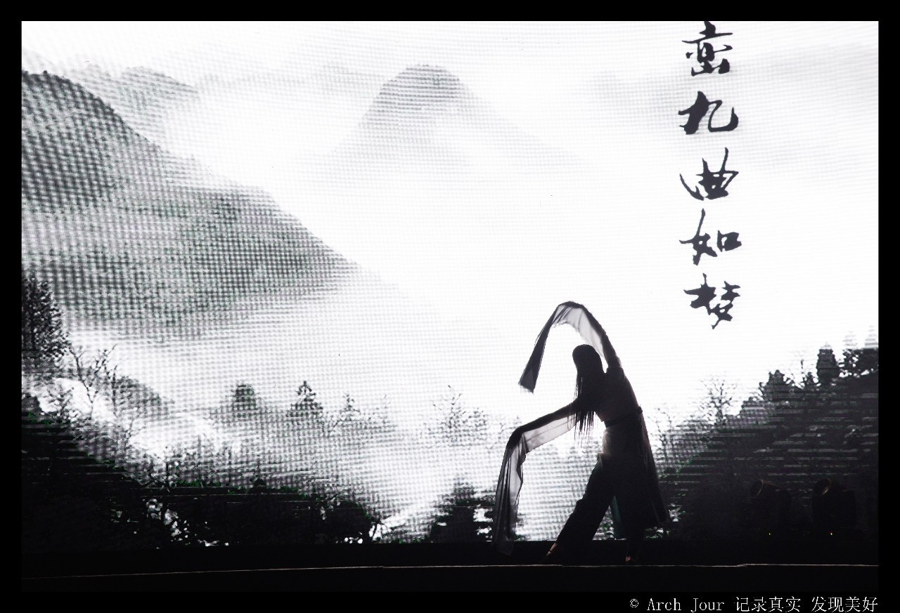 衣袂飘飘,筑乐鸣裳,zero搬运网 《筑影古今》就这样在意蕴悠长的水墨画中慢慢展开。起先合着悠扬的乐声,在一片深深浅浅泼墨的山水画前,一名女子独舞的身影格外优雅;后转白底黑框,两个黑色的身影你追我赶你藏我躲,妙趣横生;又及由屏幕转向舞台,热闹的节奏酷炫的街舞,一群黑衣舞者点燃了整场的氛围,张力非凡。