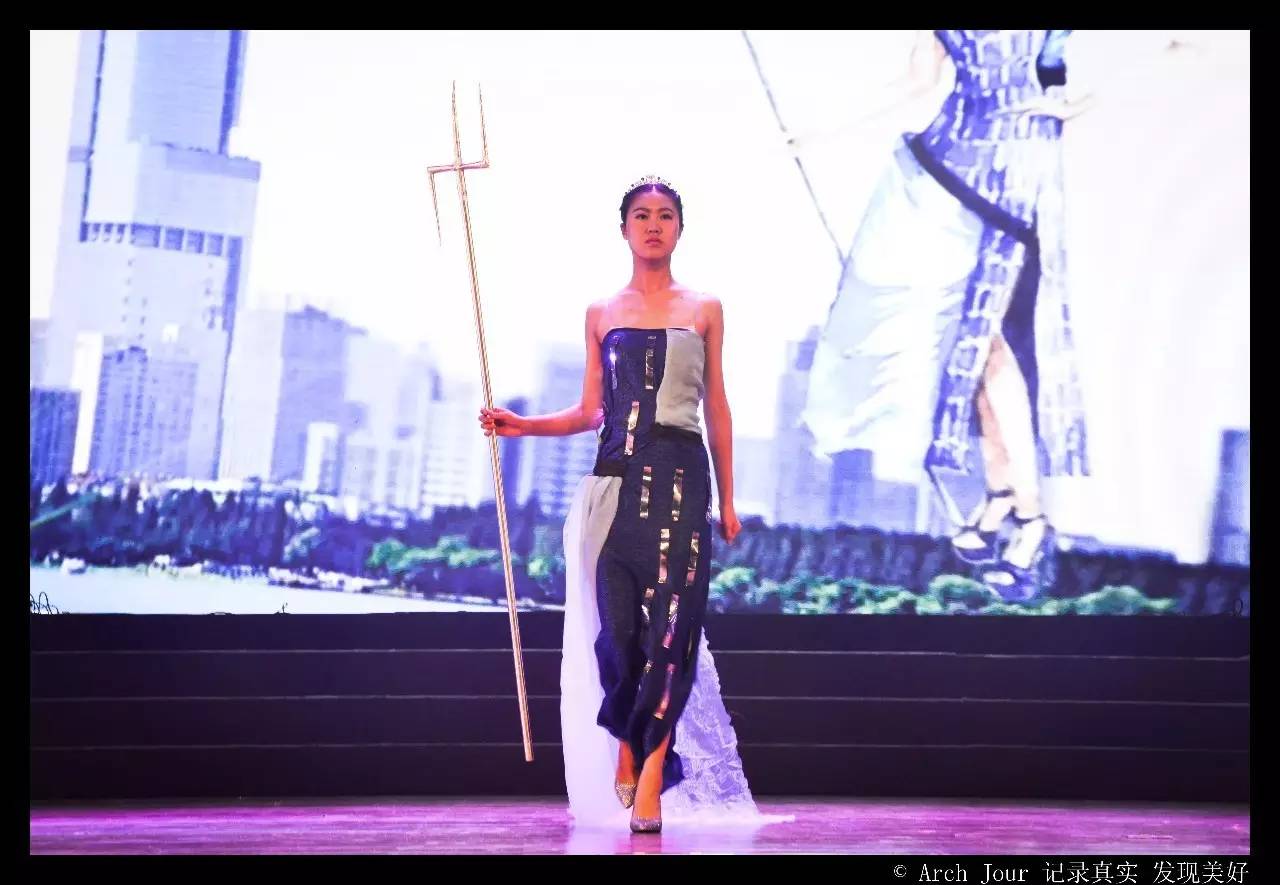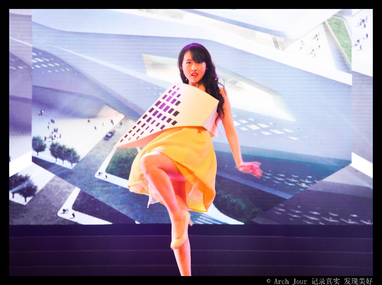 而后是更加精彩的建院特色节目——建筑时装走秀,延续了历年辉煌,依旧是这么令人瞩目。保利大剧院、紫峰大厦、奥体中心、妇女儿童活动中心,取材建筑,重新构思,在舞台耀眼的灯光和观众雷动的掌声中,模特们身着样式新颖剪裁精致的衣服从远处走来,他们不仅表现出建筑的美感,表现出创意的火花,更表现出建院的风采。在当身着象征着四牌楼大礼堂衣服的模特走出时,整场表演达到了最高潮!灯光、音效、服装,完美的诠释了这座令东大人最自豪的建筑,赋予它新的活力和热情,无不吸引了台下观众的眼球。最后历时约五分钟,凝聚无数建院人心血的精彩表演在惊叹和掌声中圆满结束。