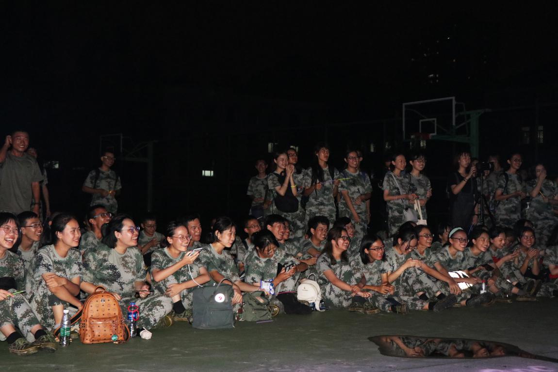 军训第一周的周五晚上,军训慰问晚会如期而至,这是一个没有晚训没有站军姿踢正步,只有歌声、表演、游戏和欢笑的夜晚。