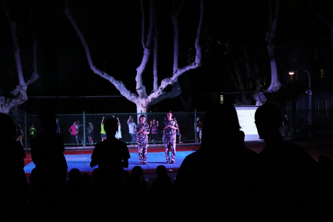 8月31日晚上,正在军训中的大一小萌新们和教官一起在榴园操场度过了愉快的一晚。“天公作美”,下午的一场雨打破了“你若军训,便是晴天”的魔咒,给小可爱们带来了清凉。雨后四牌楼的夜晚一改白天训练时的闷热难耐,空气湿润清新,带着丝丝凉意。萌新主持人即使有些羞涩,依然勇敢地站到台前。