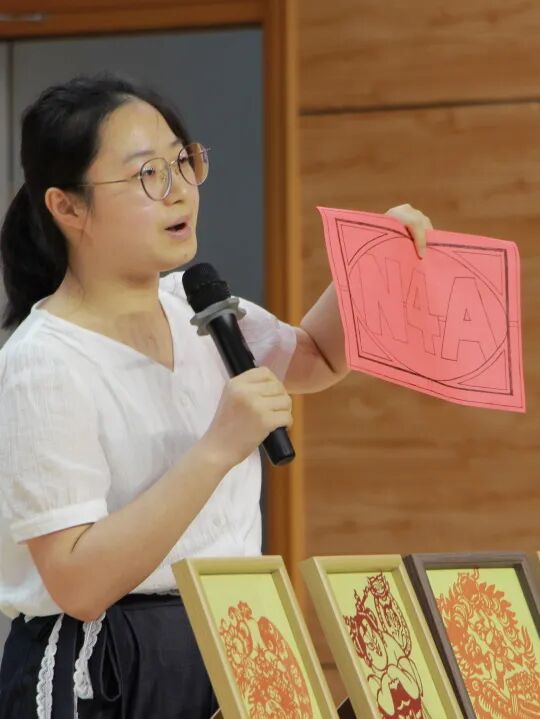 非遗剪纸传承人陈思老师带来了特色课程《剪影N4A》。在她灵巧的指尖下,象征新四军的臂章标识“N4A”跃然纸上,实现了非物质文化遗产与红色革命文化的创新融合与生动表达。