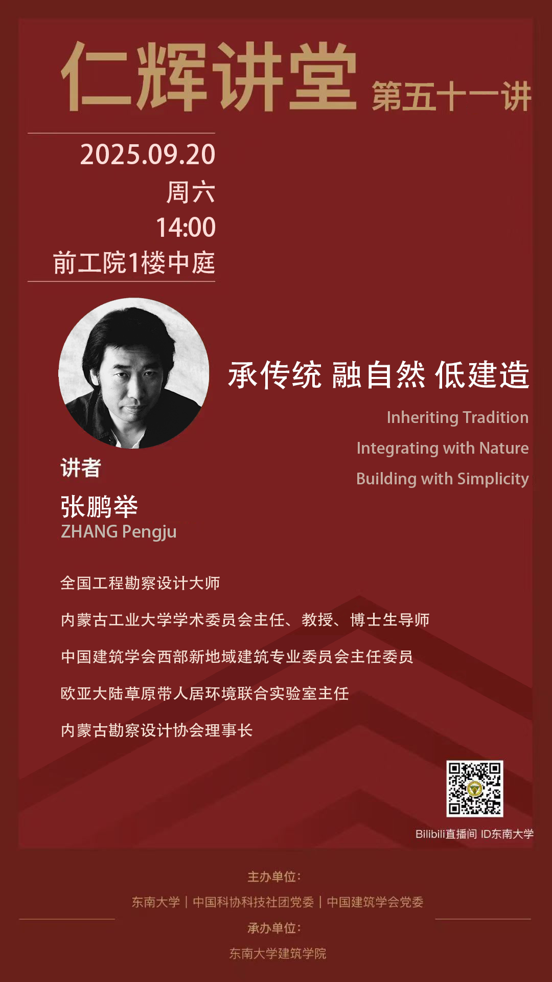 Professor Yang Tingbao, also known by his courtesy name as Renhui, was a renowned Chinese architect and architectural educator, who founded the architectural discipline at Southeast University. To honor his academic legacy, on the occasion of Prof. Yang Tingbao’s 120th anniversary in 2021, the School of Architecture at Southeast University launched the "Renhui Forum". This ongoing initiative invites leading scholars and architects from China and abroad to give lectures, advancing academic excellence, nurturing emerging talents, and promoting the development of architecture and architectural education in China.